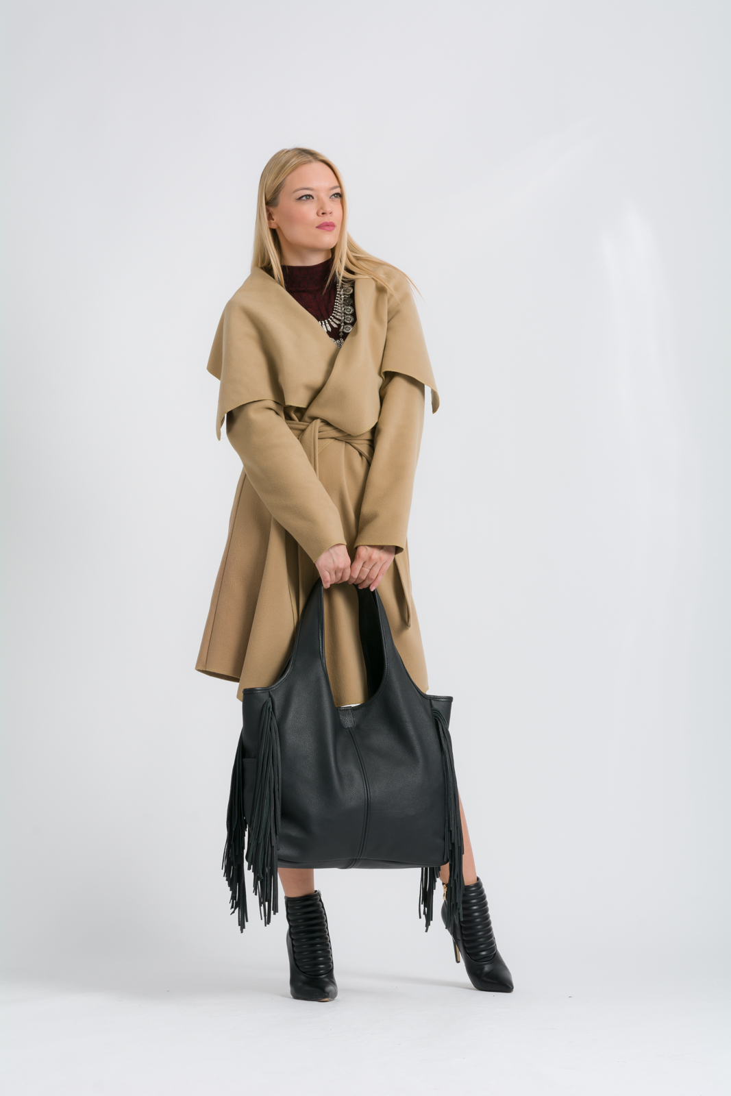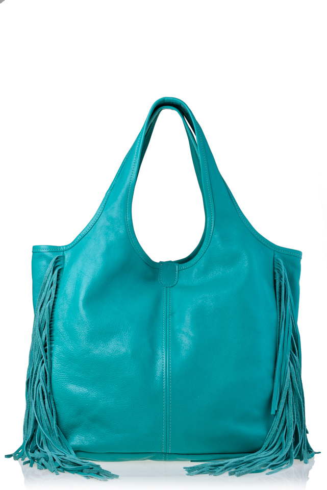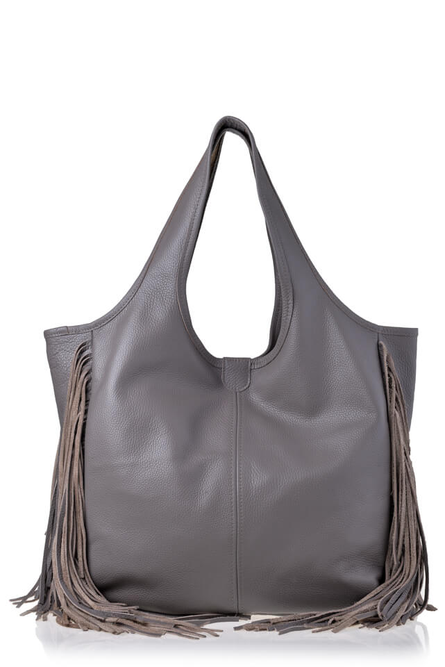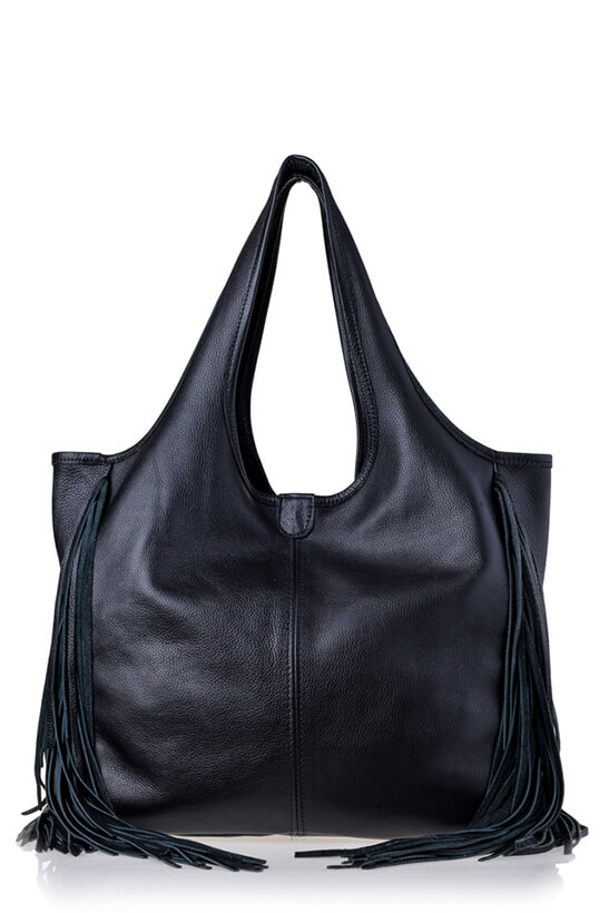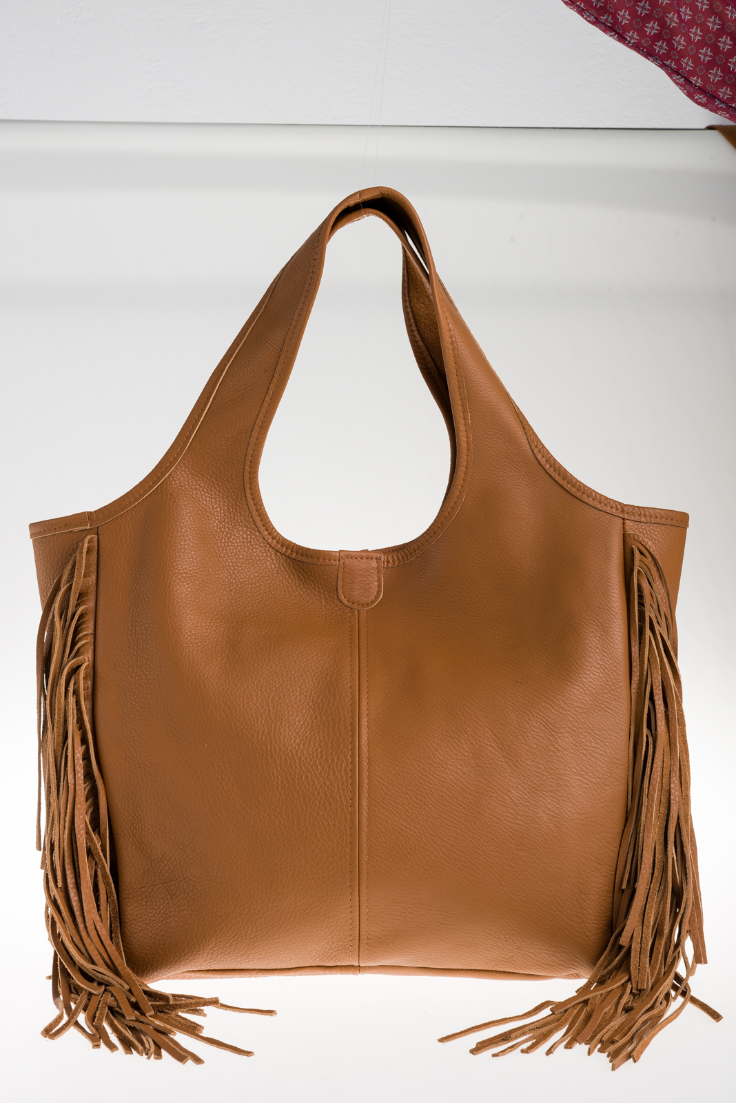 Χειροποίητη τσάντα ωμού από μαλακό δέρμα με διακοσμητικά κρόσσια