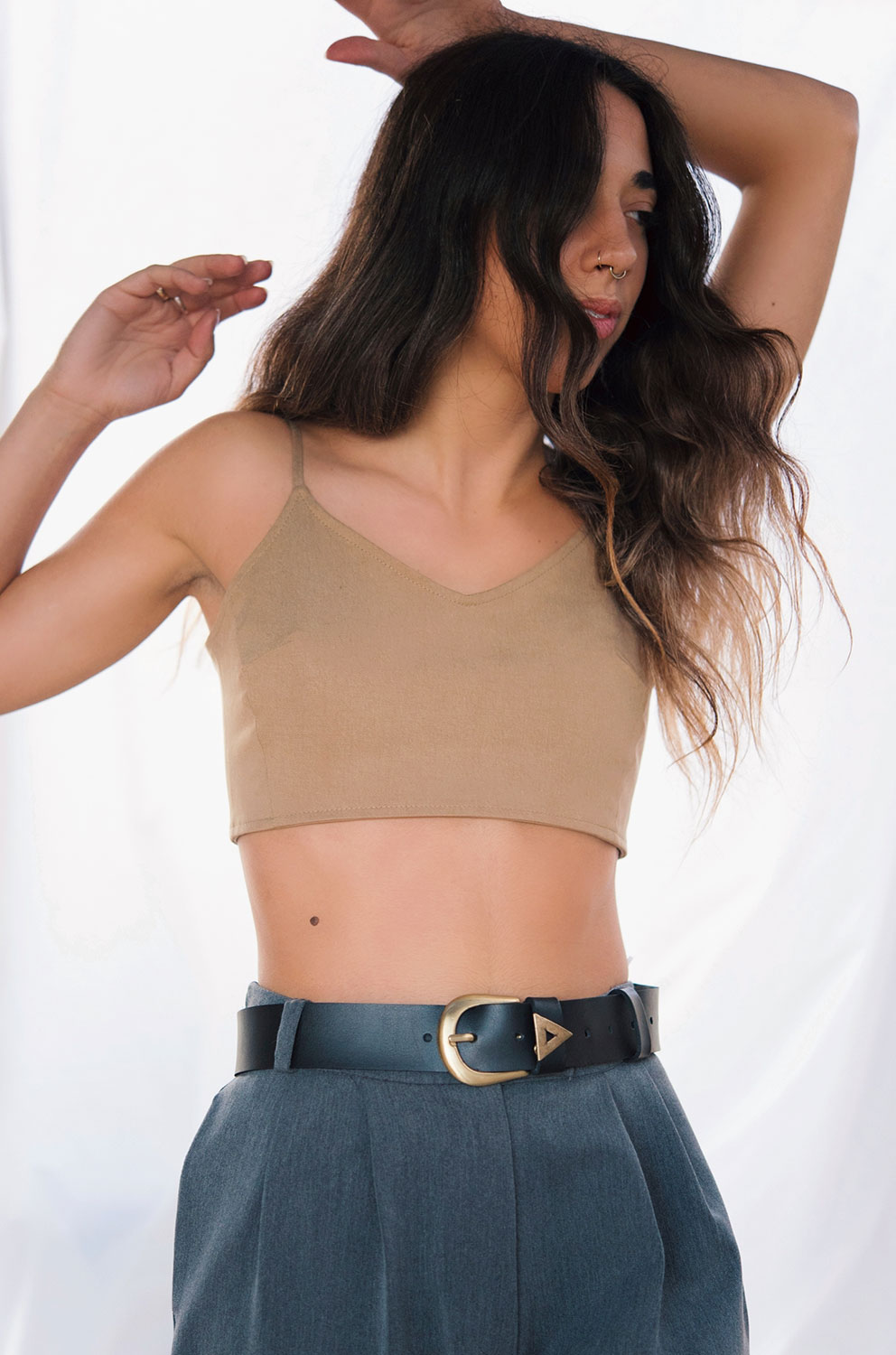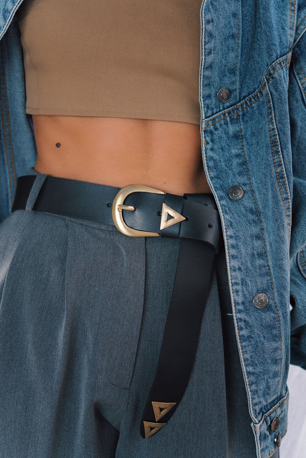 Χειροποίητη δερμάτινη ζώνη με μεταλλική αγκράφα και τελείωμα.